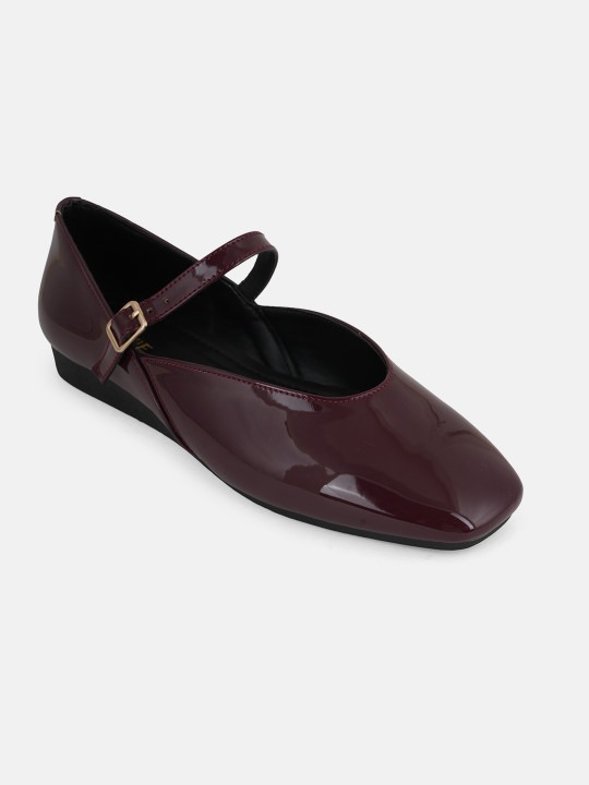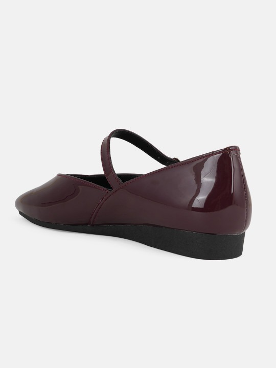A pair of maroon Mary Jane Upper Material: synthetic patent Cushioned footbed Textured and patterned outsole