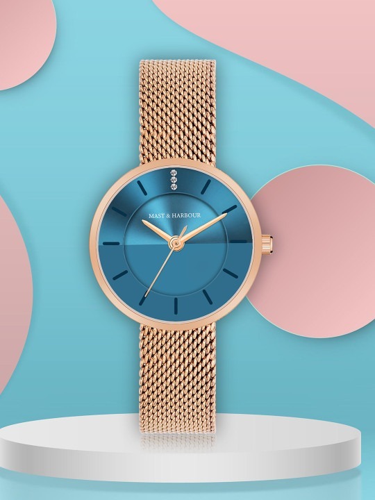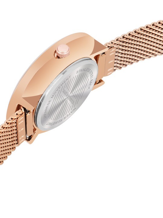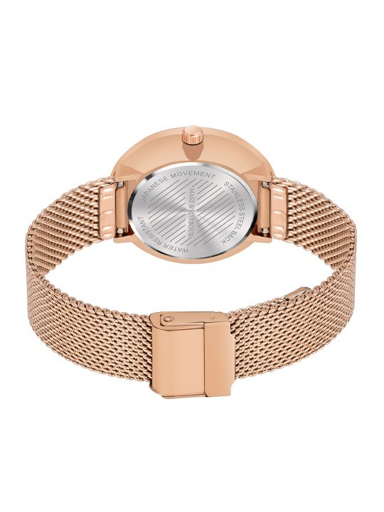 Strap Style: Rose Gold Toned, Bracelet Style, Stainless Steel Strap with A Foldover