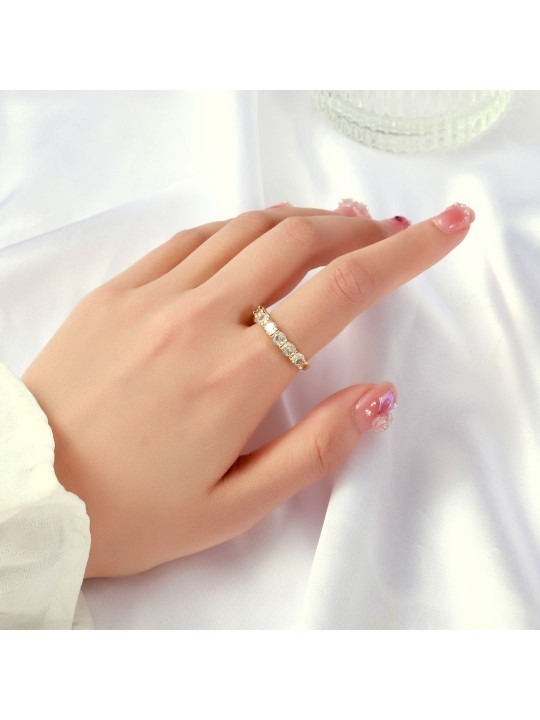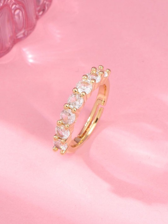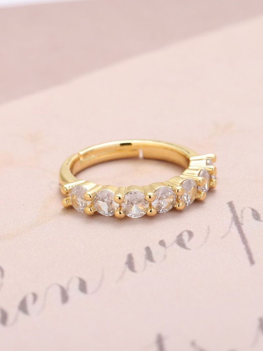 Gold toned & white The Victoria Gold Ring redefines royal elegance. With its luxurious golden hue and intricate detailing, this ring is perfect for those who appreciate classic sophistication. A stunning piece to enhance your jewelry collection or commemorate a regal moment.